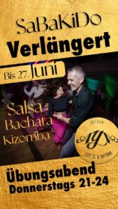 2024 sind die Termine vorerst bis zum 27. Juni bestätigt (siehe aktualisierten Flyer). Danach gibt es am 12. Juli eine Sommer Abschlussparty, bevor die Tanzschule Sommerferien macht und schließt. Voraussichtlich im September wird es dann wieder von Neuem losgehen mit SaBaKiDo und weiteren Events – wir werden euch zeitnah auf dem Laufenden halten. Euer regiosalsa-Team.
