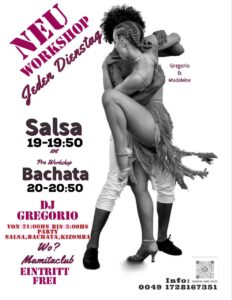 Ab sofort wieder jeden Dienstag ab 21 bis 3 Uhr mit DJ Gregorio. Vorab werden Kurse angeboten – siehe Flyer…