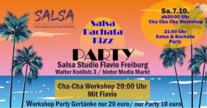 Oktober 7, 2023 20:00 Salsa Bachata Kizz Party Wahlweise mit Workshop und Getränken oder „ohne alles“…