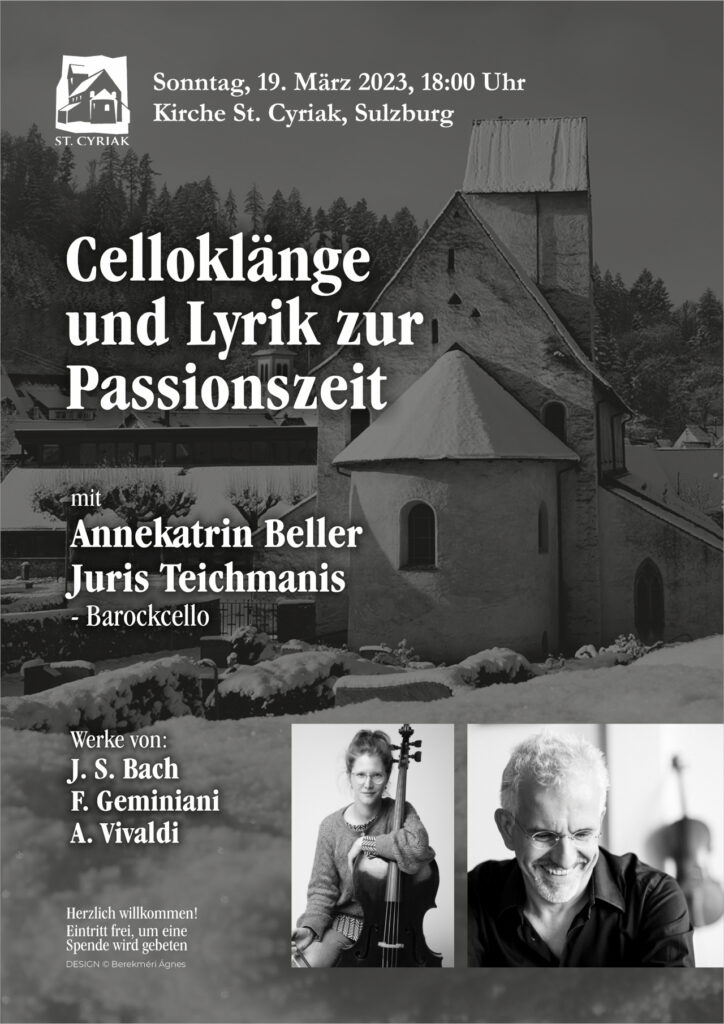 Celloklänge und Lyrik zur Passionszeit 19.03.2023 Sonntag, 18:00 mit Annekatrin Beller und Juris Teichmanis Werke von Bach, Geminiani, Vivaldi Read more articles Next PostDer Weg der Liebe